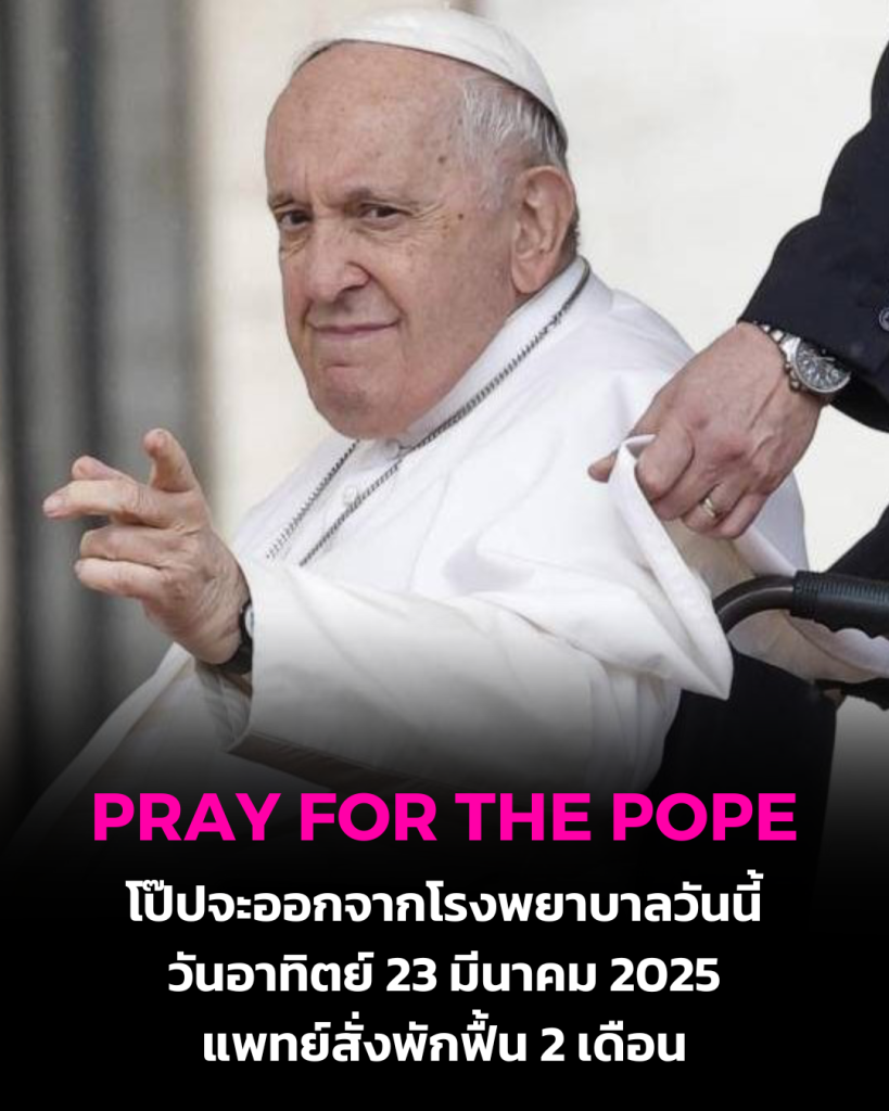 • พระสันตะปาปา ฟรานซิส จะออกจากโรงพยาบาลเจเมลลี่ ในกรุงโรมในวันนี้ (วันอาทิตย์ที่ 23 มีนาคม 2025) และจะเสด็จกลับวาติกัน เพื่อพักฟื้นต่อ